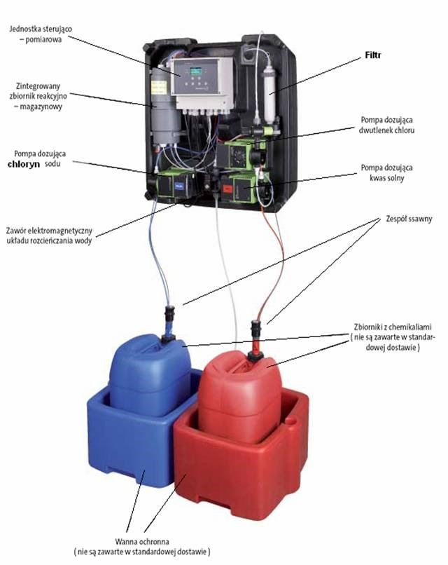 - dozowanie zawiązków chloru (m.in. podchloryn sodu),